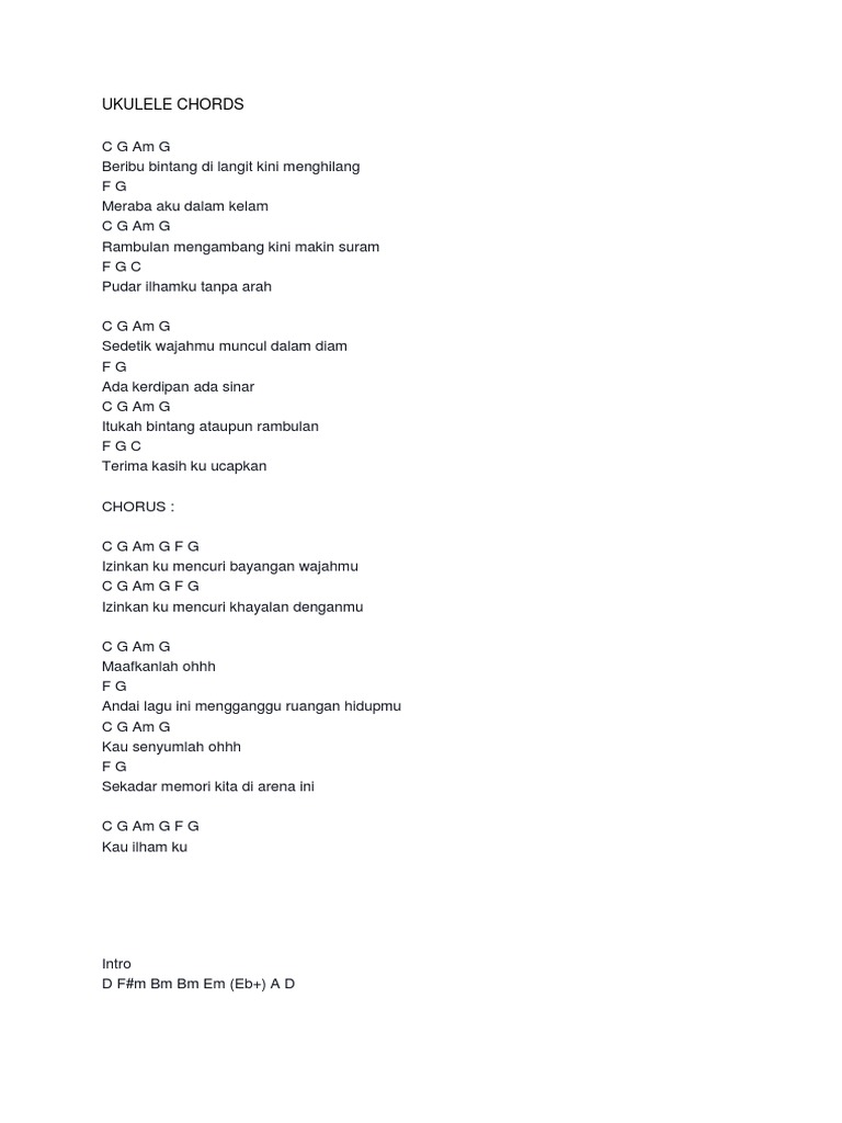Chord Terukir Di Bintang Yuna Tab Song Lyric Sheet Guitar Ukulele Chords Vip