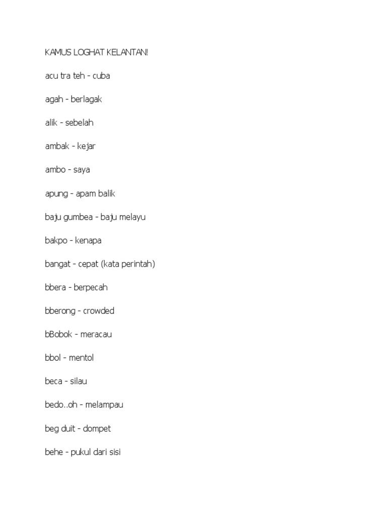 Bim - tidur utk baby. Pada dasarnya Bahasa Kelantan ini mirip dengan Bahasa. Mari Belajar Bahasa Kelantan huruf O sampai z Mari Belajar Istilah Kelantan Huruf I sampai N Mari Belajar Istilah Kelantan Huruf A sampai G Pato Kok Klate Pantun Dalam Bahasa Kelantan Petua orang Felda Jengka bagi mengelakkan pedih ma.