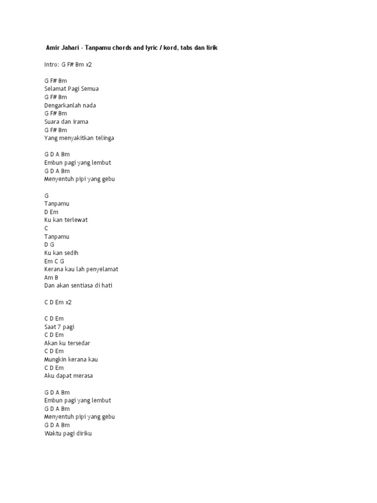 Amir Jahari Tanpamu Chords And Lyric Kord Tabs Dan Lirik