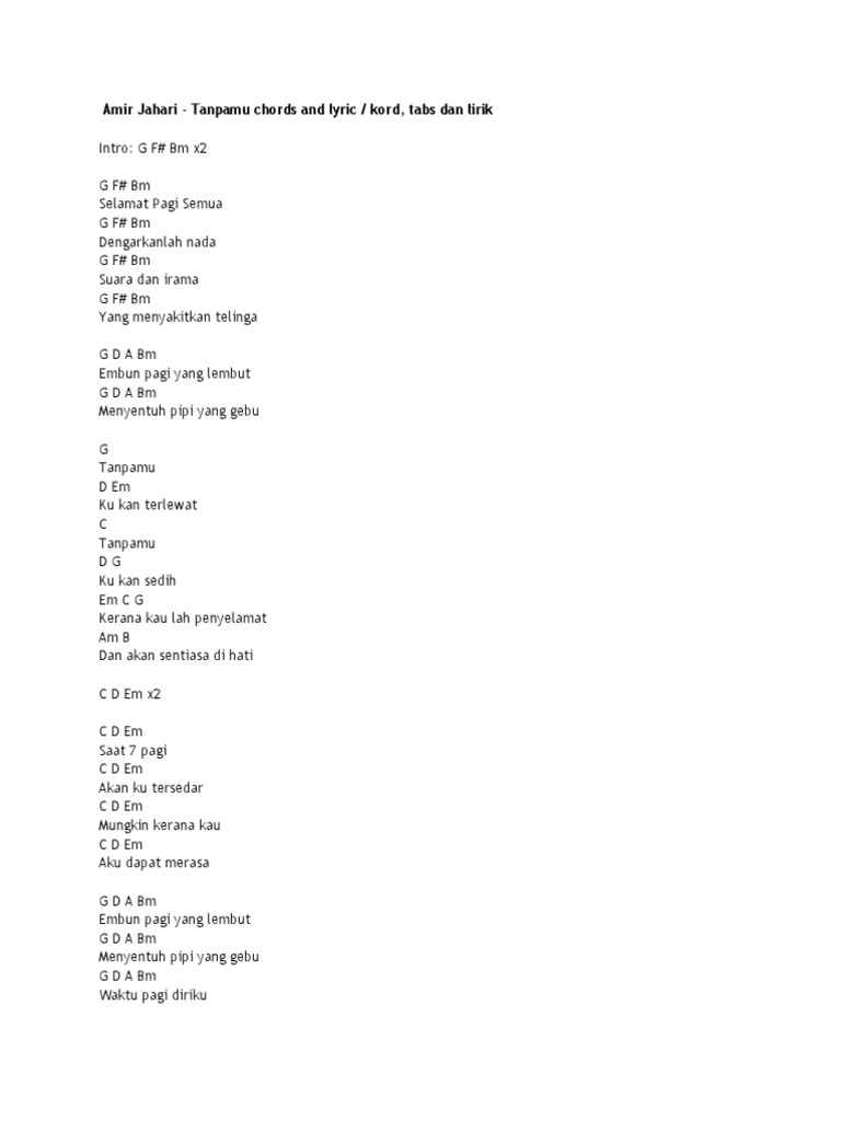 Amir Jahari Tanpamu Chords And Lyric Kord Tabs Dan Lirik