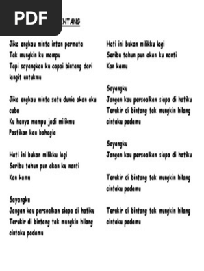 ChordTablature lyric sheet guitar ukulele song. Am E Em B E E Fm Jika engkau minta intan permata tak mungkin ku mampu B A B E Tapi sayangkan ku capai bintang dari langit untukmu E Fm Jika engkau minta satu dunia akan aku coba B A B E Ku hanya mampu jadi milikmu pastikan kau bahagia Am E Hati ini bukan milik ku lagi Am B Seribu tahun pun akan ku. Find the best version for your choice.